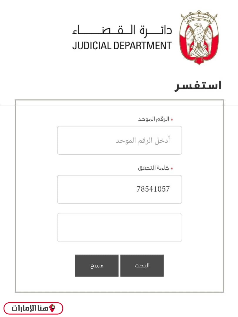 - إدخال الرقم الموحد في الحقل المخصص له.