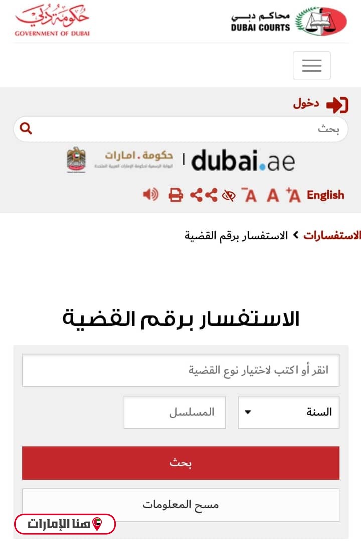 محاكم دبي الاستفسار برقم القضية والاستعلام عن القضايا